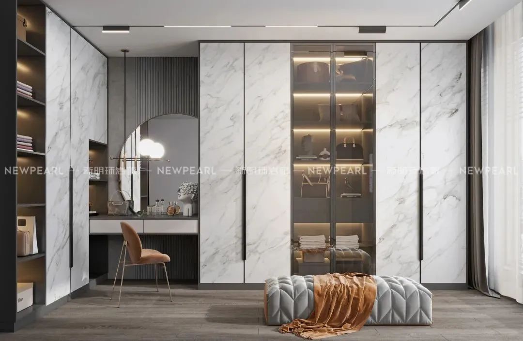 3.5mm纖薄巖板摒棄了傳統(tǒng)石材的笨重感,相對傳統(tǒng)的瓷磚類產(chǎn)品,反而更像墻漆、墻紙一類材料。較之6mm的巖板產(chǎn)品,更適合用作家具飾面(衣柜、櫥柜)、大宗電器飾面(冰箱)以及工藝品飾面(屏風(fēng)、精加工飾品)。