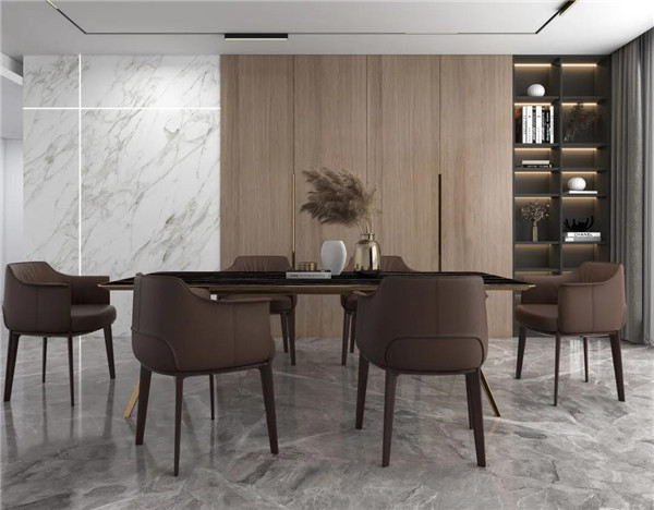 隨著定制時代的來臨,人們對瓷磚、巖板等產品個性化應用的要求也越來越高。薩米特倡導 “設計+生活”的品牌理念,洞悉市場風向,推出多種不同規格、花色、工藝的飾面巖板,尺寸最大可至3610*1210mm,厚度可低至3.5mm。