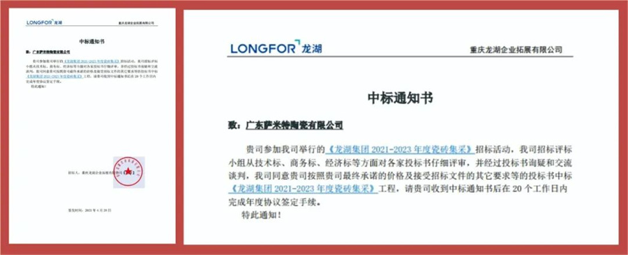 重慶薩米特中標龍湖2021-2023年度瓷磚集采項目