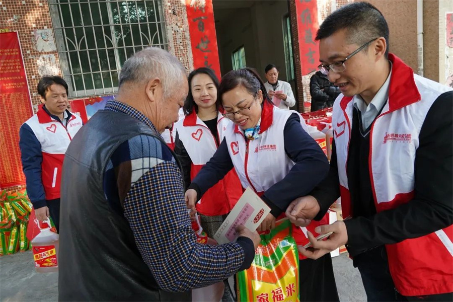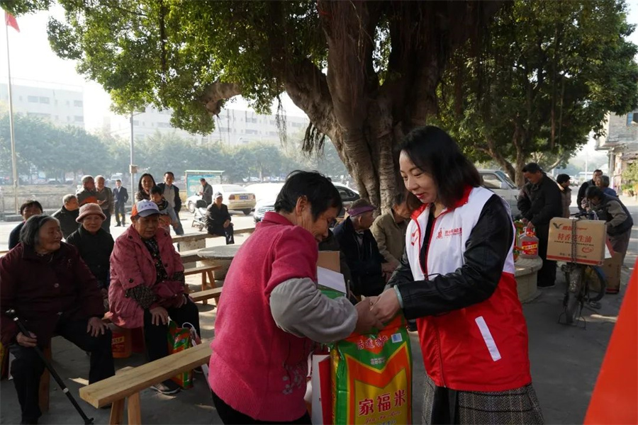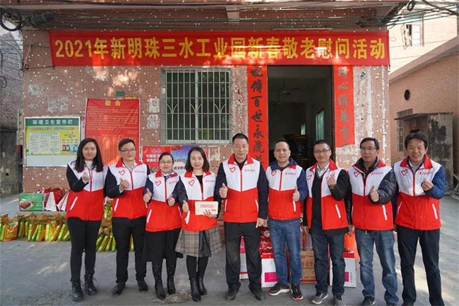 三水園區的建成和發展,離不開當地政府和廣大群眾的大力支持與理解。創富思源,回饋社會也是新明珠始終扛在肩上、放在心里的企業社會責任和公益慈善理念,自2005年開始,新明珠三水園區在每年的中秋和春節期間,都會為園區附近的周村、鄧坑村等多個村落65歲以上的老人送上節日的祝福,至今已連續進行了16年。