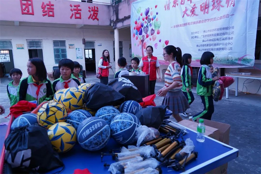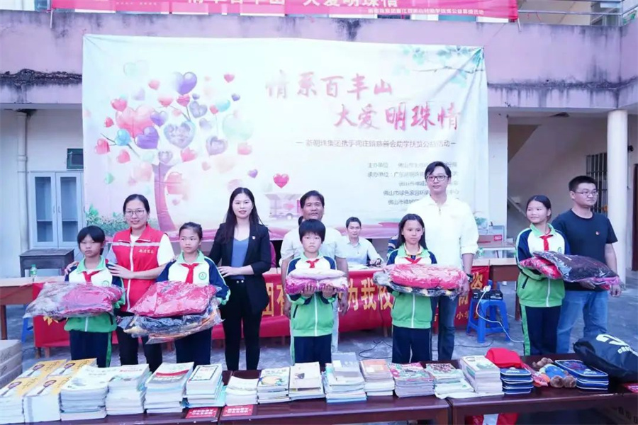 11月12日下午,由佛山市生態環境局禪城分局主辦,廣東新明珠陶瓷集團有限公司、南莊鎮慈善會承辦的“情系百豐山,大愛明珠情”扶貧助學公益活動在廉江市雅塘鎮百豐山村小學正式舉行。活動現場,新明珠集團為百豐山村小學的一百多名師生送上了一份飽含新明珠人愛心的助學“大禮包”,為貧困山村小朋友們的健康成長和快樂學習做出一份貢獻。