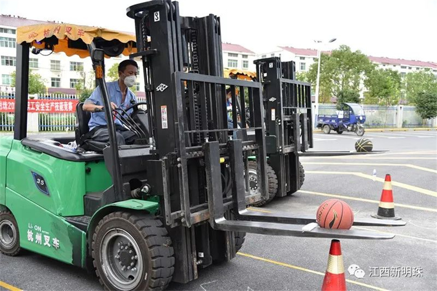 利用叉車叉起籃球至雪糕桶上,考驗(yàn)的不僅僅是選手們嫻熟的叉車操作技術(shù),更是“穩(wěn)、準(zhǔn)、快、巧”的綜合能力。
