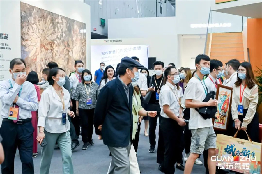 7月23日,2021年佛山潭洲陶瓷展第四天,碧桂園集團創始人、董事局主席楊國強率采購、設計團隊到新明珠各品牌展位參觀交流。