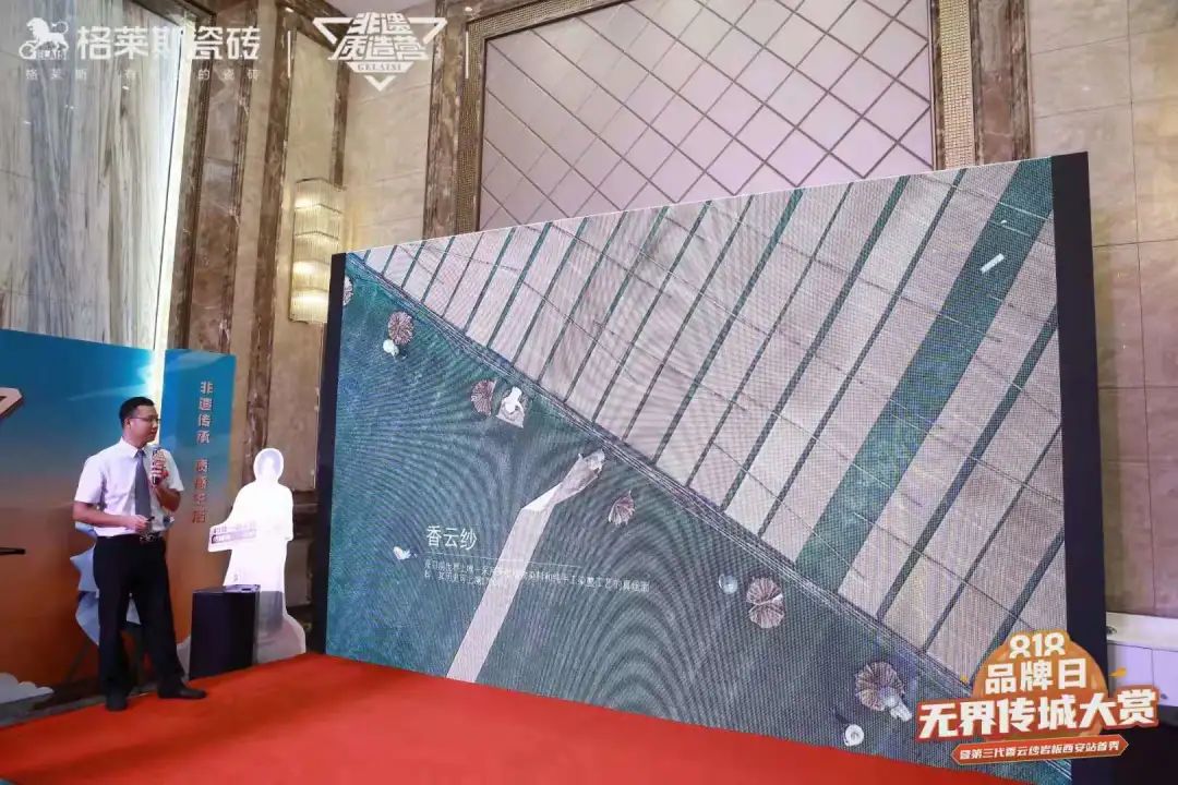 隨后,格萊斯瓷磚品牌總經理黎汝讓通過視頻直播致辭。他表示,格萊斯創新推出的香云紗瓷磚打造文化自信的潮流,讓非遺文化以新的表現方式走進尋常老百姓家里。隨著格萊斯非遺融合計劃的推進,非遺文化已成為格萊斯極具辨識度的獨有品牌IP,“使用,就是最好的傳承”不僅是我們對非遺傳承的態度,更是讓年輕一代感受非遺文化的創新方式。