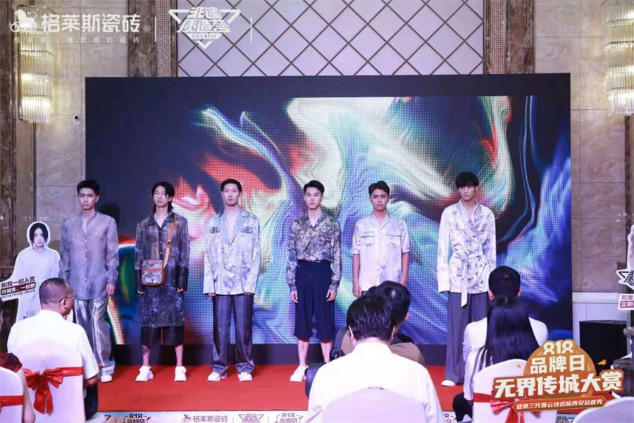 現場6位時尚男模身穿高定香云紗服飾開啟了傳統與時尚相融合的T臺大秀。這些香云紗服飾創作正是以香云紗瓷磚3.0新品為靈感來源,可謂時尚產業的“跨界力作”。