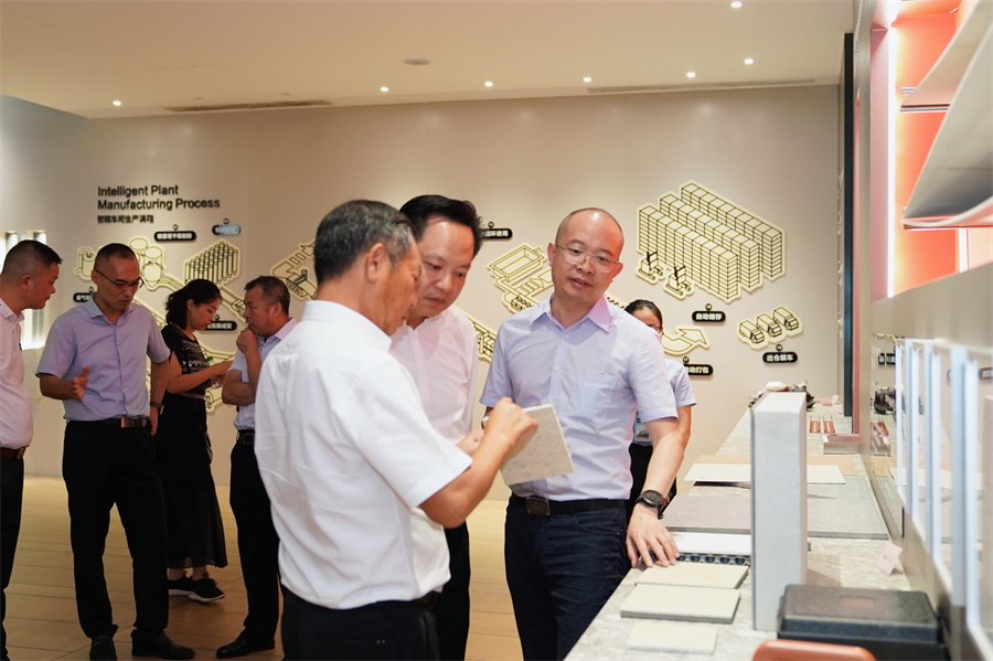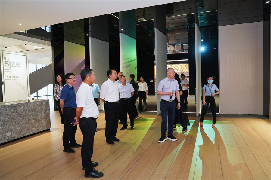 隨后,眾領導在葉董、簡總、高總的陪同下,驅車前往新明珠肇慶祿步綠色工業園區,實地考察并聽取了新明珠近年來在環保措施和綠色發展方面的情況,對新明珠在智能化、數字化轉型、提質增效和高產值產品升級等方面取得的成效表示高度肯定,并圍繞陶瓷行業如何進一步高質量發展展開深度討論。