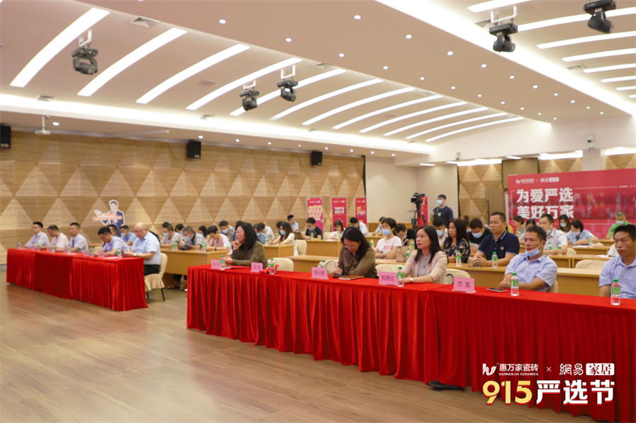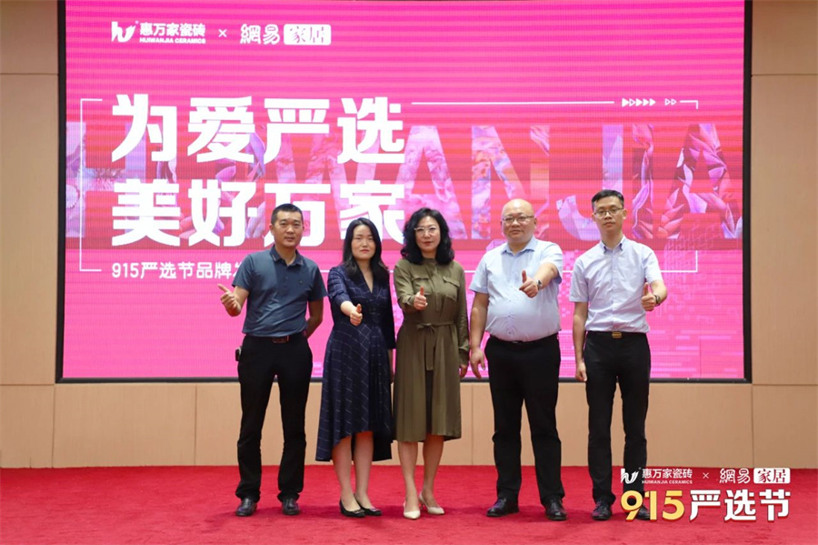 9月15日,惠萬家瓷磚x網易家居“為愛嚴選 美好生活”915嚴選節發布會在佛山總部隆重舉行。新明珠集團副總經理企劃管理中心總經理高頌、網易家居新聞中心主編鄭哲、惠萬家品牌總經理龐國慶、市場二部總監招智斌、企宣部部長程小麗及廣東地區經銷商代表出席本次啟動會,與二十多家行業主流權威媒體共同見證915嚴選節正式發布!