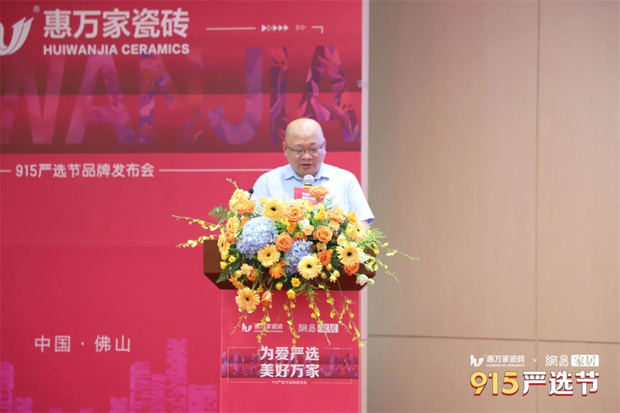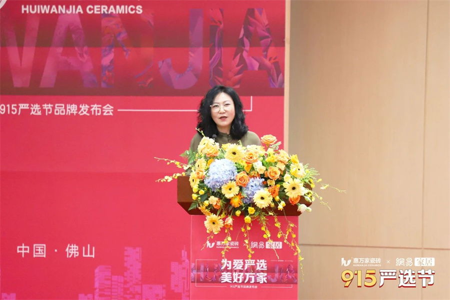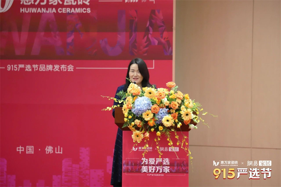 發布會上,集團領導高總發表致辭,她表示,“在這個消費不斷升級的時代,越來越多年輕消費者更注重品牌實力及產品質量,消費呈個性化和多元化發展趨勢。2021年惠萬家瓷磚推出暖男阿澤IP形象是一個不錯嘗試,通過與消費者關系的構建并且不斷迭代與創新,逐步積累形成品牌長期資產。此次惠萬家攜手網易家居開展915嚴選節系列活動,是一個非常好的契機,將為惠萬家的發展注入活力。”
