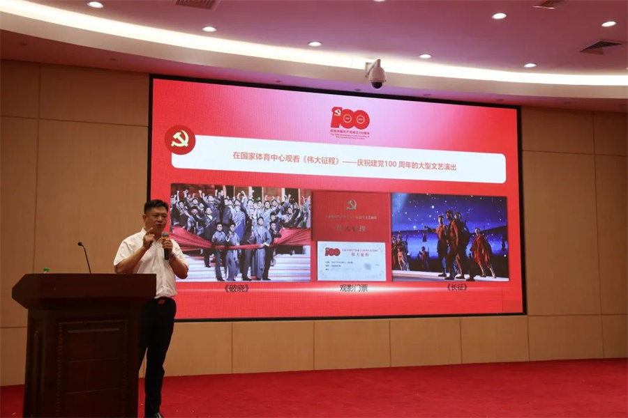 程祖彬生動而飽含激情地講訴了其參加全國“兩優一先”表彰大會、觀看大型情景史詩《偉大征程》、觀看“七一勛章”頒授儀式、參觀“中國共產黨歷史展覽館”、參加慶祝中國共產黨成立100周年大會等活動的深刻感悟,整齊有序的殲-20戰斗機、“七一勛章”獲得者張桂梅的故事……現場黨員們聽完紛紛熱血沸騰,深切地感受到中國共產黨的偉大領導及中華民族偉大復興的豪邁壯志!他表示,將繼續為群眾辦實事,發揚勞模精神、勞動精神、工匠精神,為企業、為社會做出更大貢獻!
