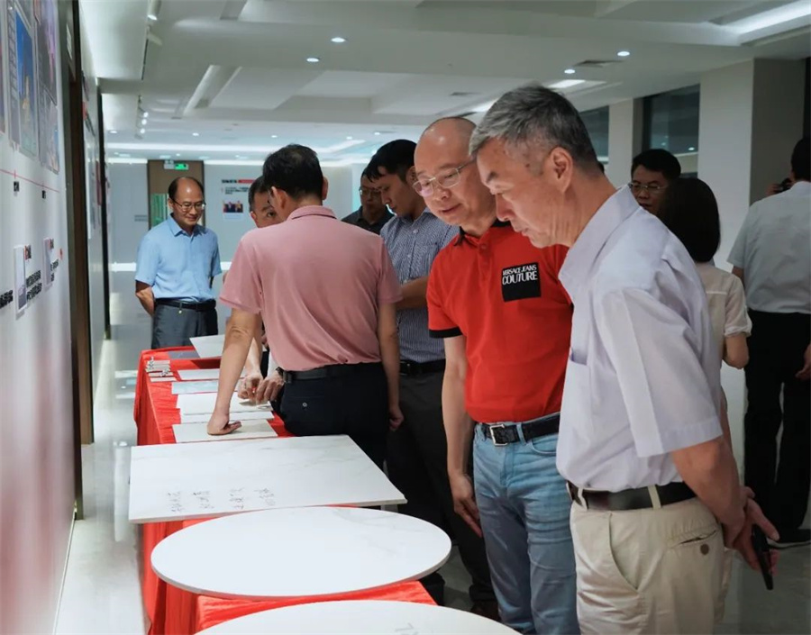 與會專家審閱鑒定資料、聽取項目匯報、現場考察參評產品,并對項目情況進行了詳細的質詢和討論,鑒定委員會一致認為“UV光固化復合材料增強陶瓷巖板關鍵技術、裝備與應用”成果總體技術達到國際先進水平,其中UV光固化技術和裝備達到國際領先水平。