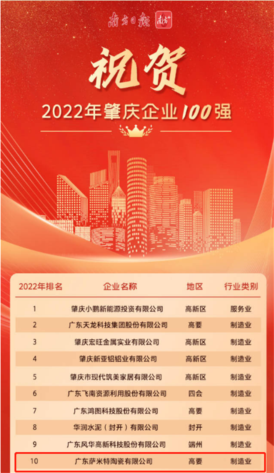 近日,肇慶市企業聯合會、肇慶市企業家協會聯合發布“2022年肇慶企業100強”、“肇慶制造業企業50強”、“肇慶民營企業50強”,3份榜單中,廣東薩米特陶瓷有限公司(以下稱新明珠集團祿步園區)均進入十強。憑借穩健的盈收能力、超強的科技創新能力以及節能環保的綠色發展理念,新明珠集團獲得社會各界實力嘉許。