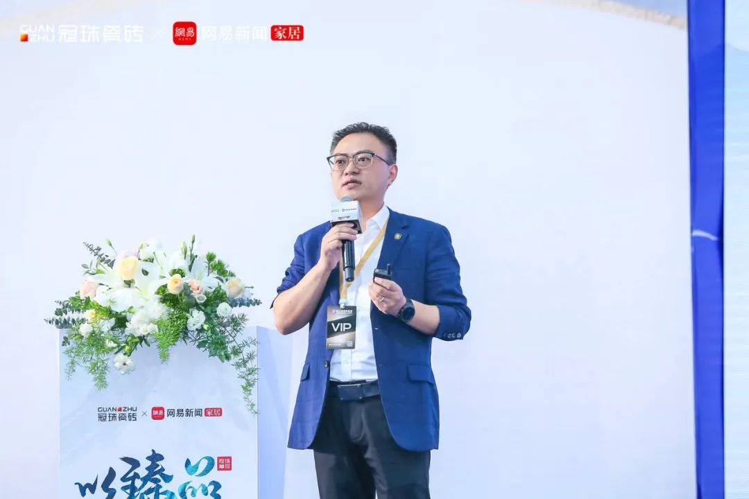 新明珠集團副總裁、營銷管理中心總經理鄧勇在開場致辭中表示:冠珠瓷磚自創立以來,始終以用戶為導向,進行科技創新與品質服務,探索更適合高端消費人群、更符合大宅設計風尚的產品,歷經多年潛心研發,打造1800x1200mm冠珠華珍系列巖板。從“冠珠華脈”到“冠珠華珍”,其背后都是冠珠瓷磚對消費者品質、精神需求的精準把握與傾力滿足,也是冠珠瓷磚推出1800x1200mm冠珠華珍巖板的初心,以華之珍寶,獻禮中國大宅,讓中國人的家更美好。