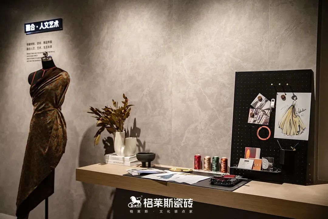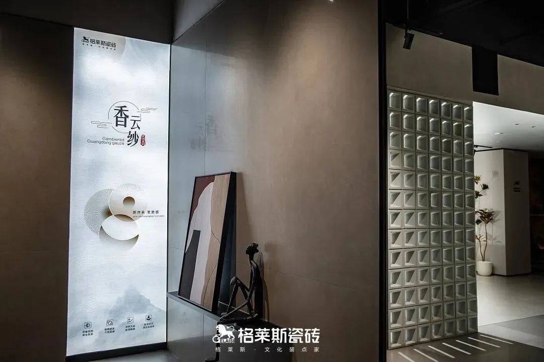4月18日當天,全新升級的格萊斯新展廳——“香云紗·現(xiàn)代傳承館”在一眾領(lǐng)導(dǎo)嘉賓和核心經(jīng)銷商的矚目中揭開神秘面紗。新展廳格萊斯把當代人文藝術(shù)與審美融入展館,圍繞 “溯源、跨界、融合、新生”文化發(fā)展歷程的四大階段,瓷磚和香云紗在這里交匯融合,結(jié)合格萊斯特色產(chǎn)品,打造出了不同種主題場景。