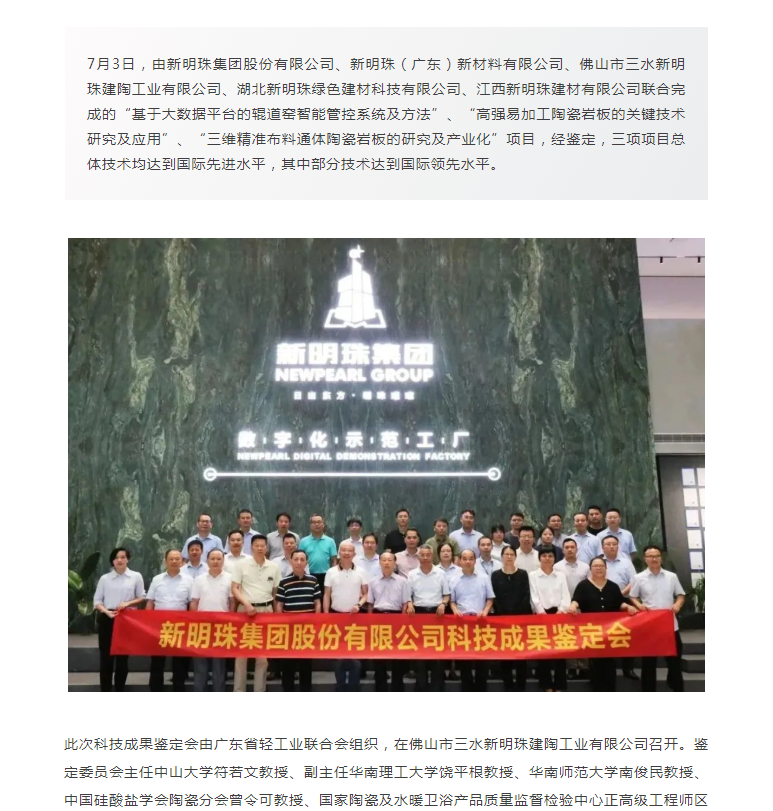 重磅|新明珠集團科技創新再添三項“國際先進”技術成果