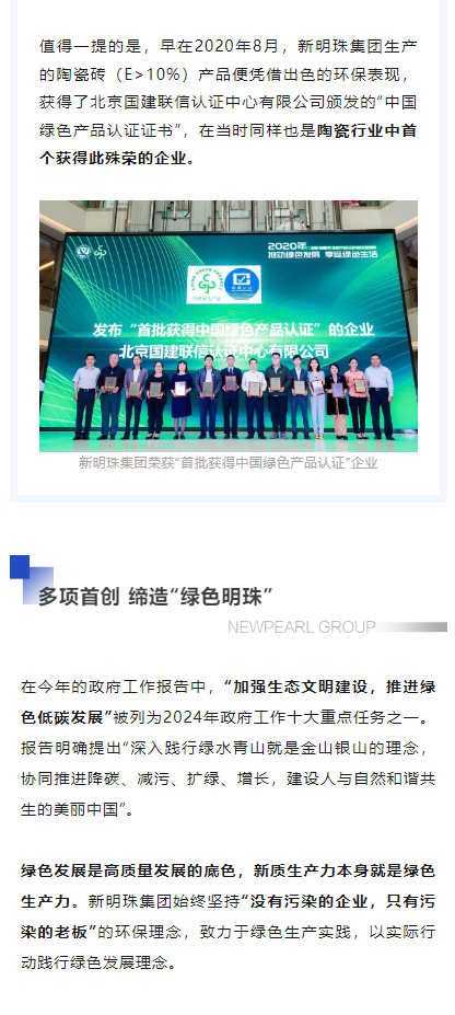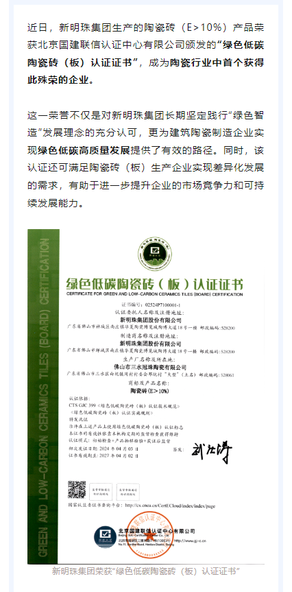 行業首個!新明珠集團產品獲綠色低碳陶瓷磚(板)認證