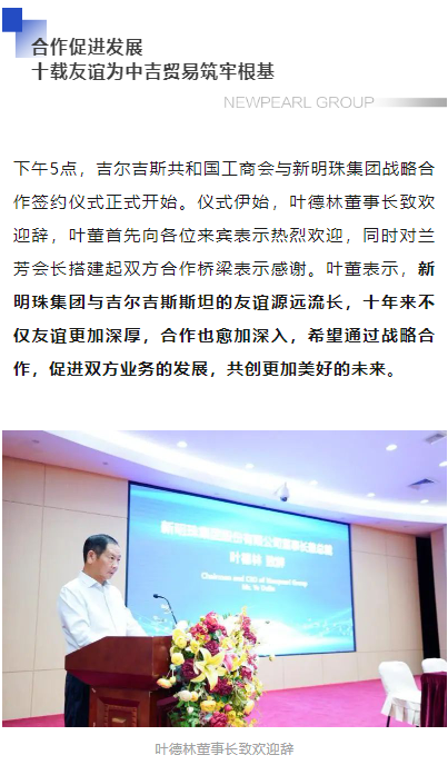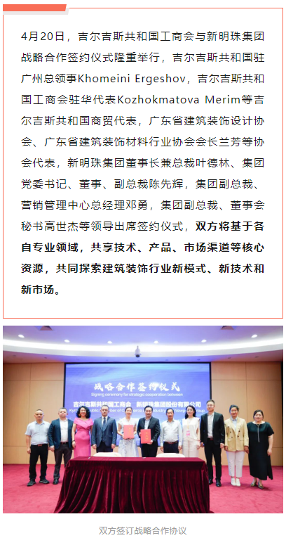 新明珠集團與吉爾吉斯共和國工商會簽署戰略合作協議,品質制造助力“一帶一路”建設