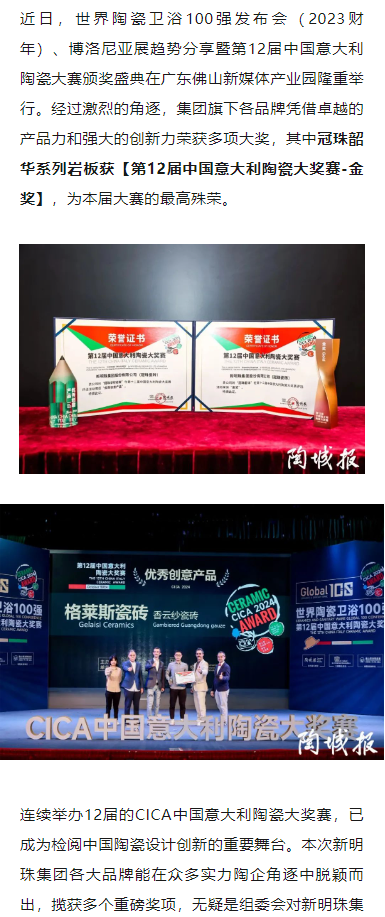 品質引領!新明珠集團榮獲多項國際權威陶瓷大獎