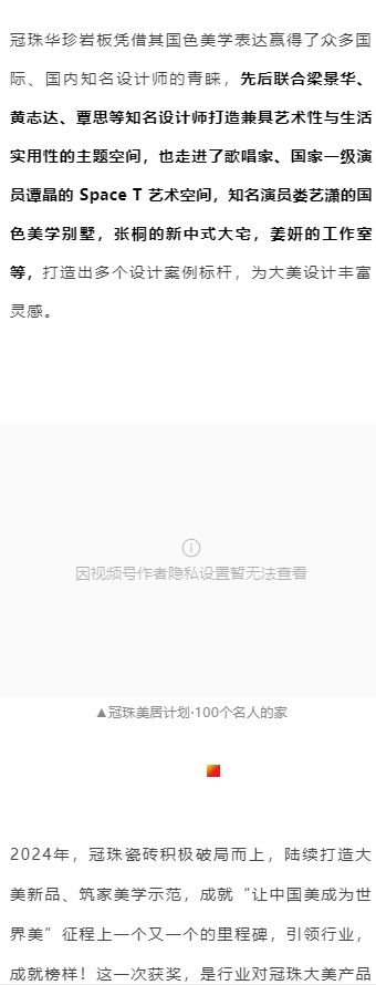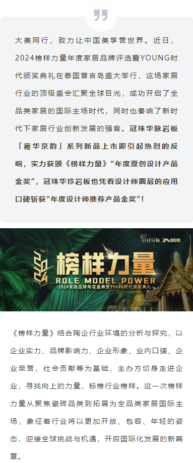 品牌硬實力 | 冠珠華脈「雍華京韻」系列榮獲2024《榜樣力量》“年度原創設計產品金獎”,華珍巖板成設計師推薦熱款