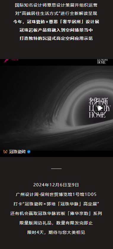 來廣州設(shè)計周一起看“冠珠瓷磚×郭培「冠珠華脈」高定展”